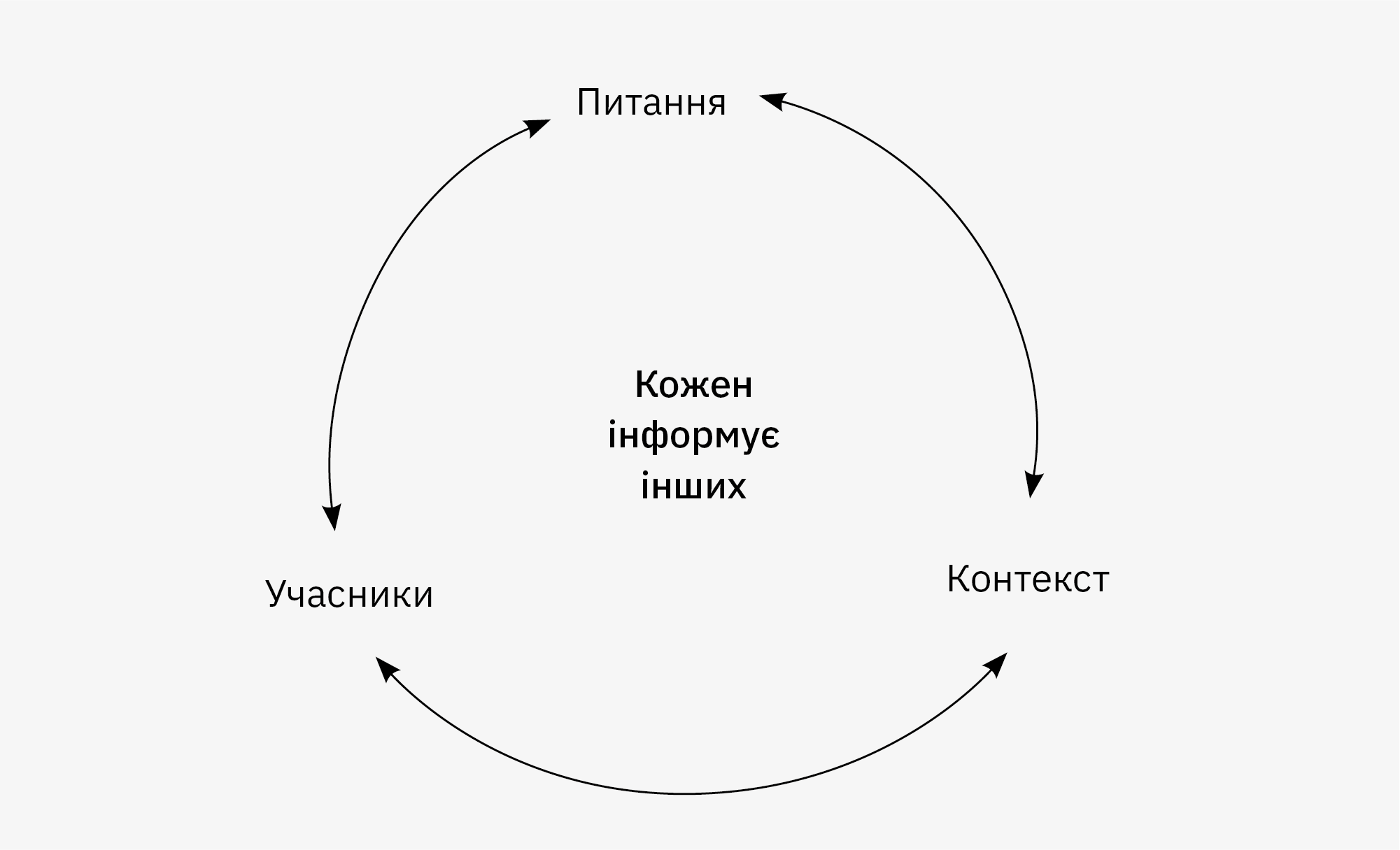 Короткі стрілки представляють оцінку взаємодії контексту та проекту.