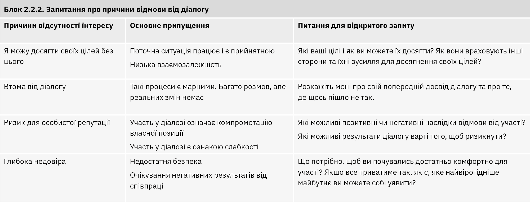 Див. Обґрунтування діалогу в гл. 2.2 Див. Побудова процесу діалогу в гл. 2.3